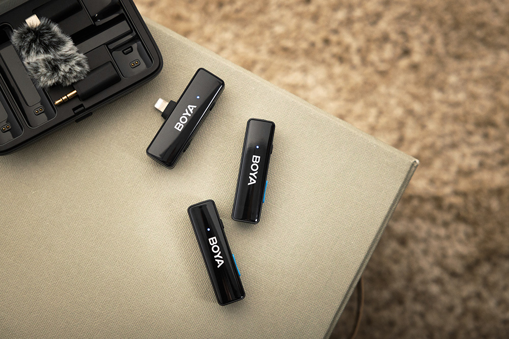 BOYALINK es un sistema de micrófono inalámbrico con canales duales de 2.4G. Equipado con conectores USB-C, Lightning y TRS de 3,5 mm, BOYALINK es la solución definitiva para los creadores de contenido que exigen una grabación de audio de alta calidad sin la molestia de múltiples conectores o adaptadores. Su diseño de almacenamiento todo en uno, la tecnología inalámbrica de doble canal y la configuración fácil de usar lo convierten en la opción ideal para cualquiera que busque llevar su grabación de audio al siguiente nivel.